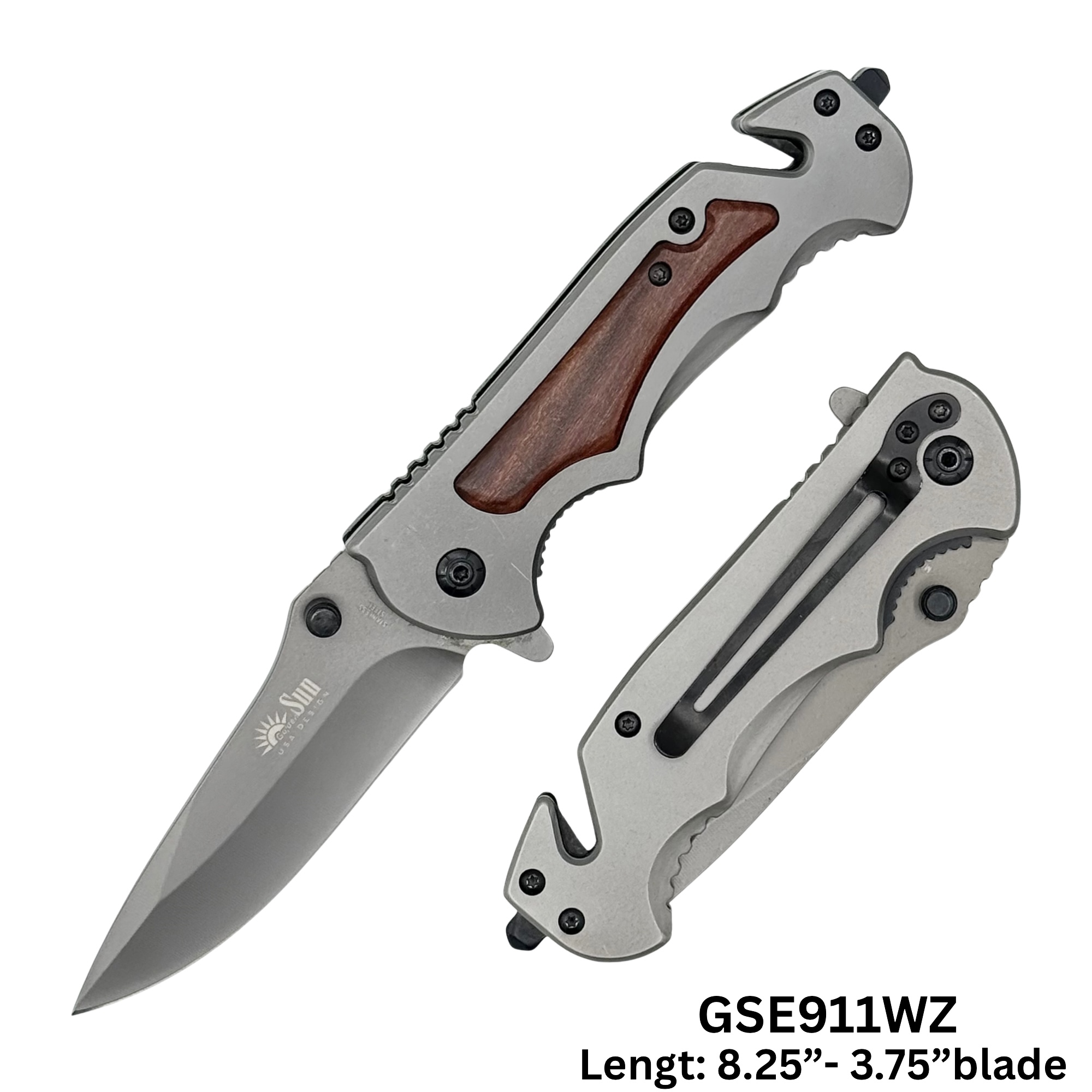 GSE911WZ stainless blade, wood handle , sophisticated look with wooden handle W/ belt cutter & glass breaker